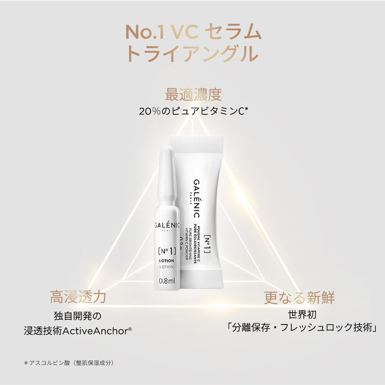 No.1 VC セラムは、20%の高い濃度のピュアビタミンCを配合し、独自開発の浸透技術「ActiveAnchor®(アクティブアンカー)」を採用しています。